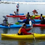We had 4 heats of kayaks (And one BRAVE stand up paddle boarder), each heat consisting of about 16-18 kayaks.