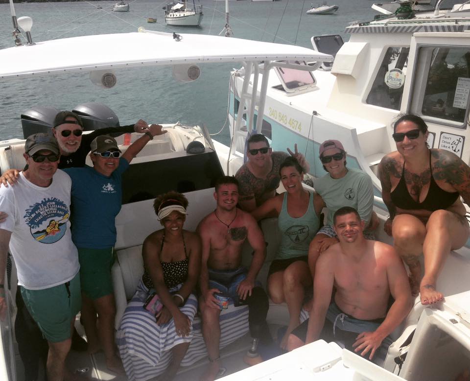 Saturday after breakfast we started the day with a mile practice swim, after lunch we kayaked the course and attended the pre-swim meeting with the other 300+ entrants in the event. Sunday the race began around 8 AM, depending on the length of the course you were swimming. Swimmers had a choice of a 1-mile, a 2 ½ mile or a 3 1/2 mile open water swim. A party put on by the Friends of the VI National Park followed the event, during the award ceremony the TRR participants received special recognition for their dedicated service to their county. On Monday we were treated to 2 wonderful boating events from island charter companies. During the trip our meals were provided by island restaurants and transportation by the St. John Community Foundation. We are grateful for TRR’s Island contact Tom Larson and all his efforts with this event. We would also like to thank Nico Marcolongo of the Challenged Athletes Foundation, without grants we received from Operation Rebound for our participants, this event would not have happened.